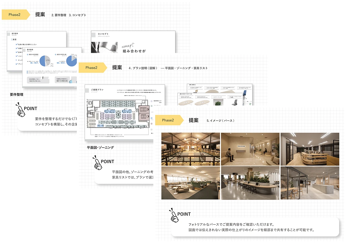 「なぜこのレイアウトなのか」「どう変わるのか」を根拠とともに伝える設計書です。