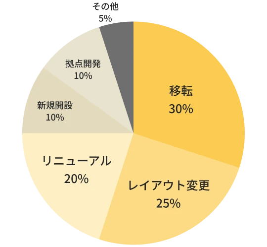 スタートアップから上場企業に至るまで、多岐にわたるご要望に応えてきました。各企業のビジョンやカルチャーを反映したオフィスデザインで、働く人々の創造性や個性を最大限に引き出します。