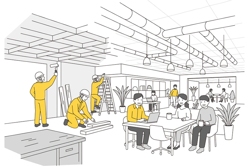 一部エリアのレイアウト変更から、フロア全体の全面改装まで幅広く対応可能です。