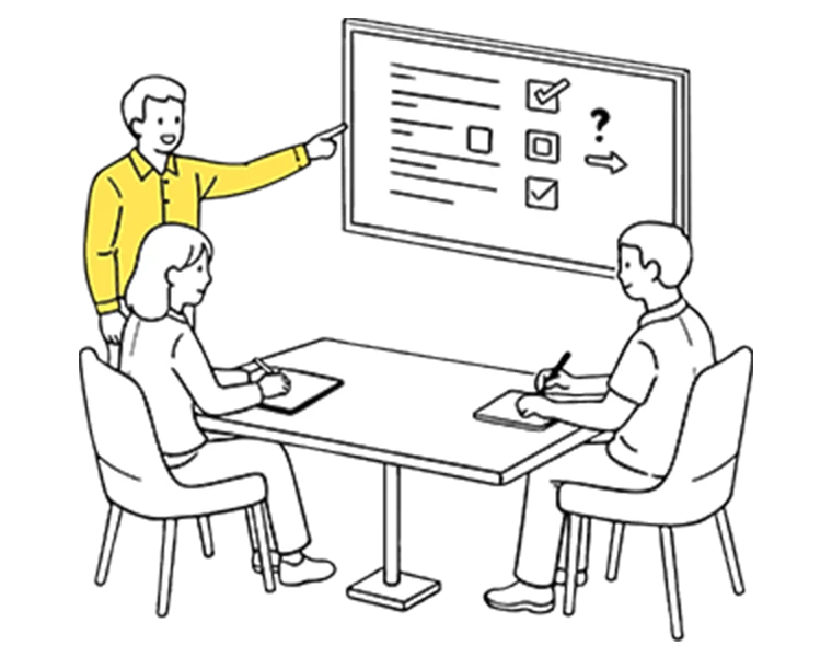 業務の流れや使い方の癖をヒアリングし、課題の整理からお手伝い。ふわっとしたご相談でも、具体的な提案に落とし込みます。